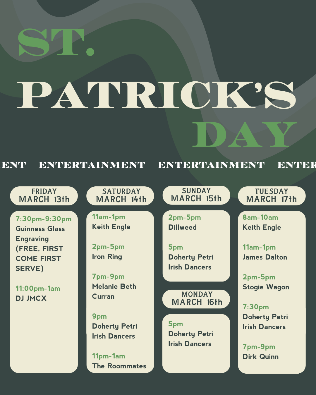 St. Patrick’s Day 2026 will be celebrated March 13th to March 17th.